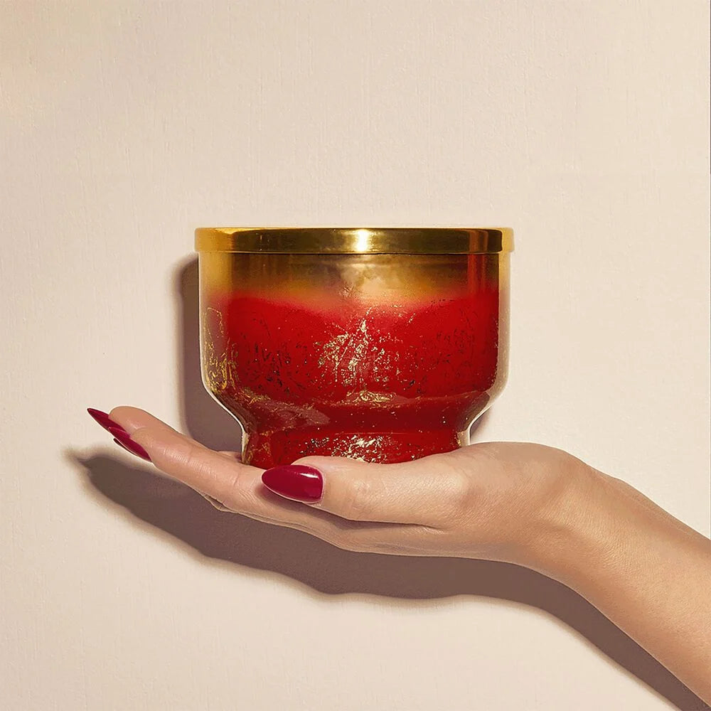 Glimmer your way through the chilly fall days with our Apple Cider Social Glimmer Inverted Jar! Featuring a stunning cranberry red and metallic foil finish, this candle will give you all the cozy fall feels. Fill your space with delicious notes of crisp apple, cinnamon, juicy pear with grated clove and fresh nutmeg.