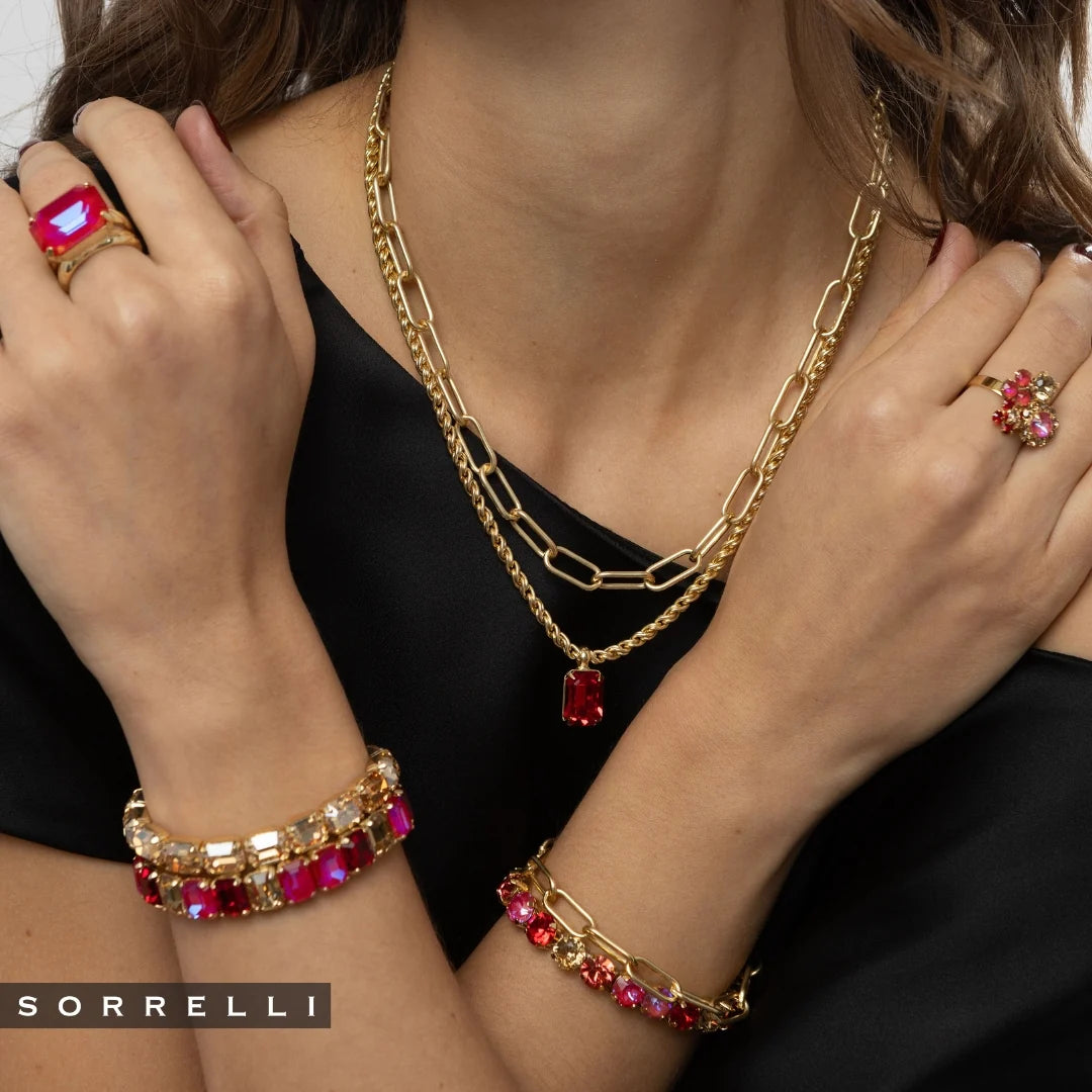 The Talya Long Necklace features a line of round-cut crystals on a long, chunky paperclip chain, secured with double lobster claw clasps. The unique double lobster claw clasp design allows for a truly customizable necklace length. From Sorrelli's Honey Bourbon collection in our Bright Gold-tone finish.