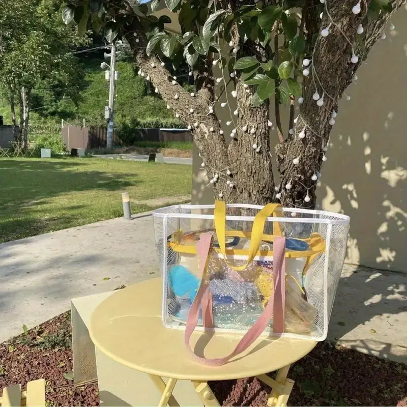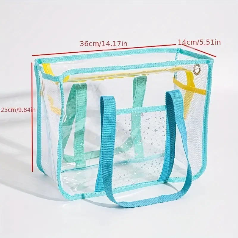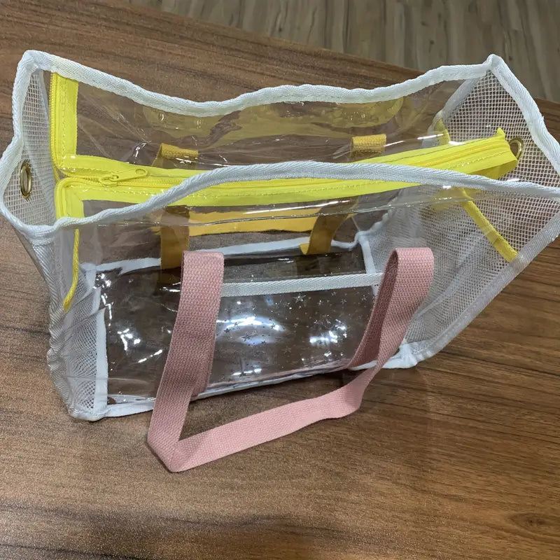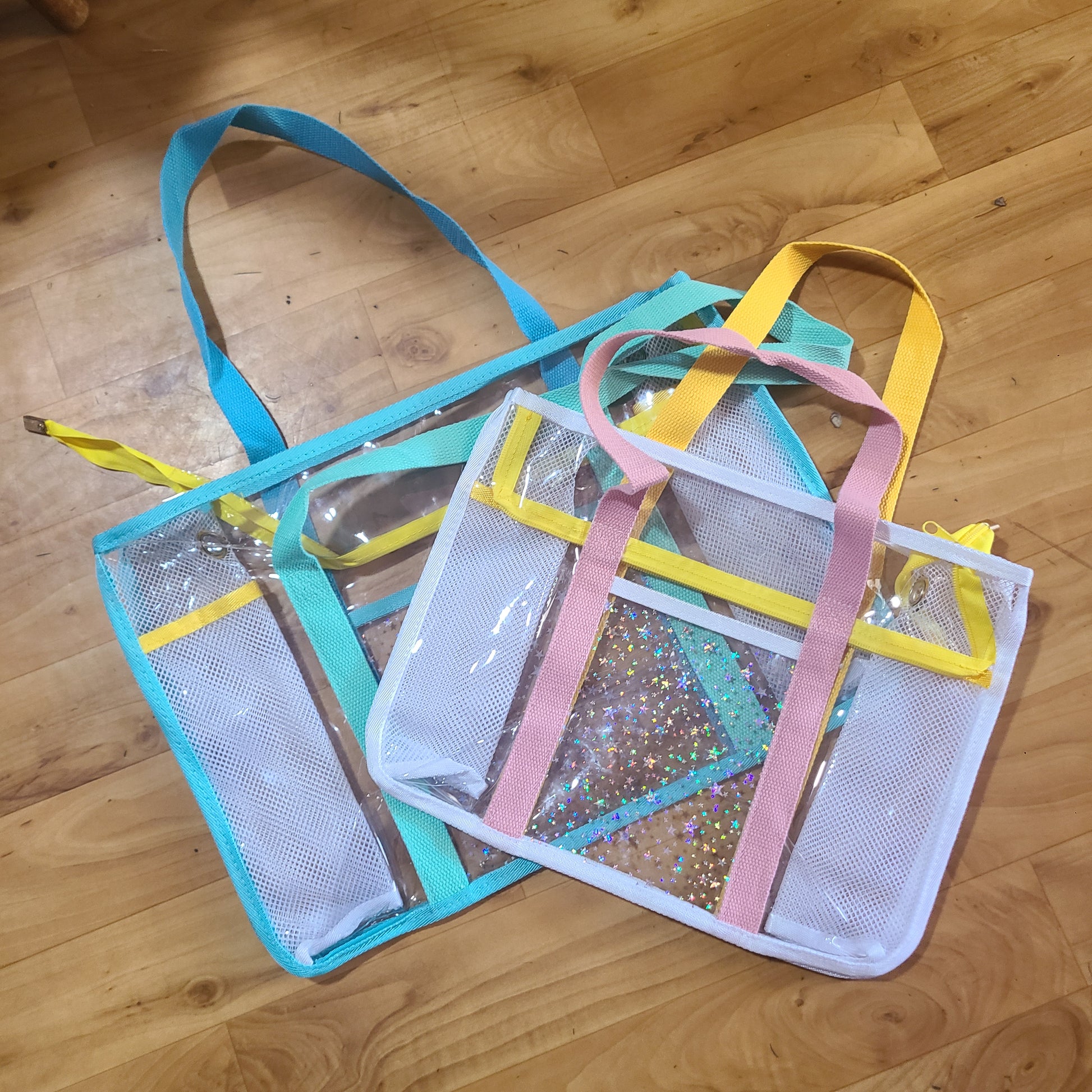 Clear Bags with multi color straps. Perfect for Pool Days!