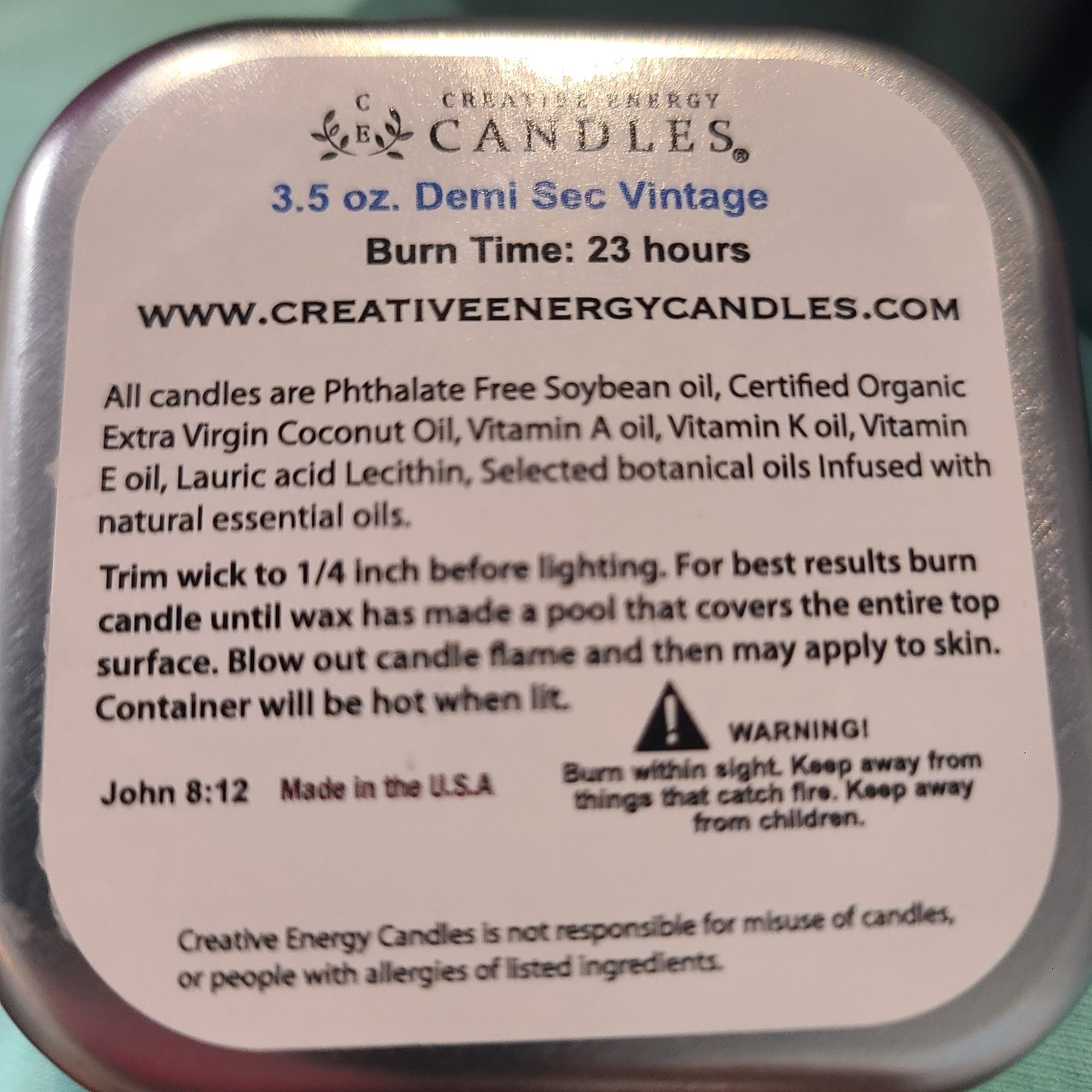 The Creative Energy Candle is a hand-poured, scented soy candle that when lit, melts to create not only a beautiful scent, but also a luxurious lotion for your skin. Because it is made with all plant-based ingredients, it is suitable for all skin types. The Creative Energy Candle has naturally occurring vitamins A, E and K, minerals, antioxidant and anti-aging properties. These earthbound properties play a major role in protecting our skins elasticity and maintain an overall healthy balance.