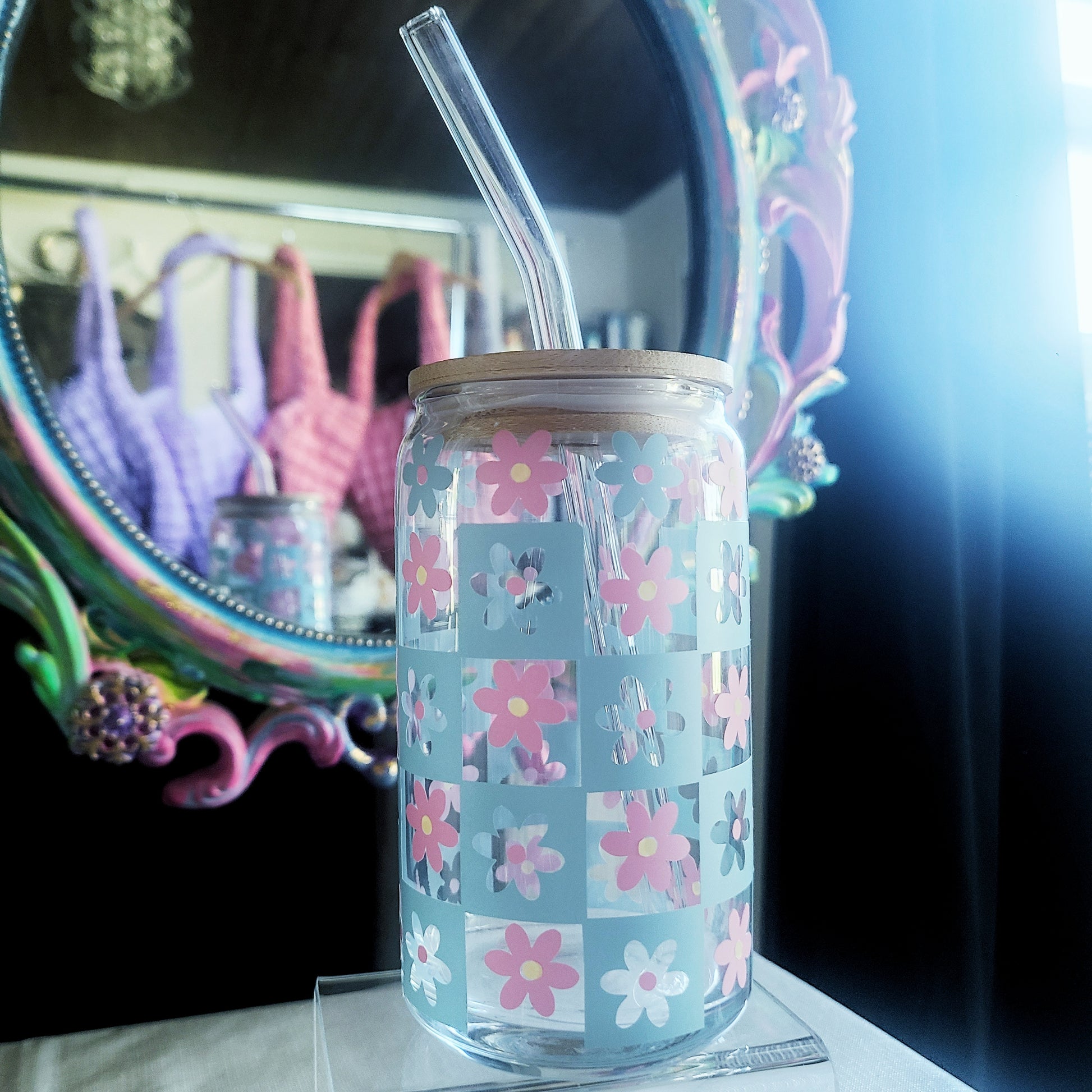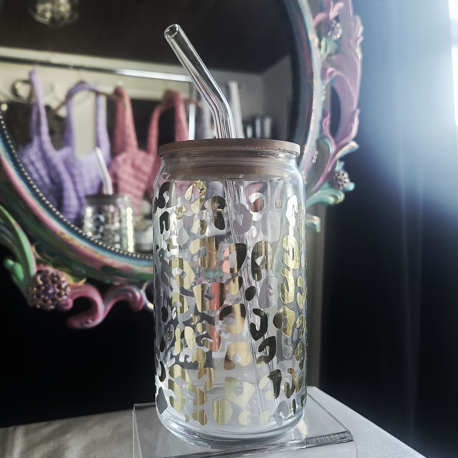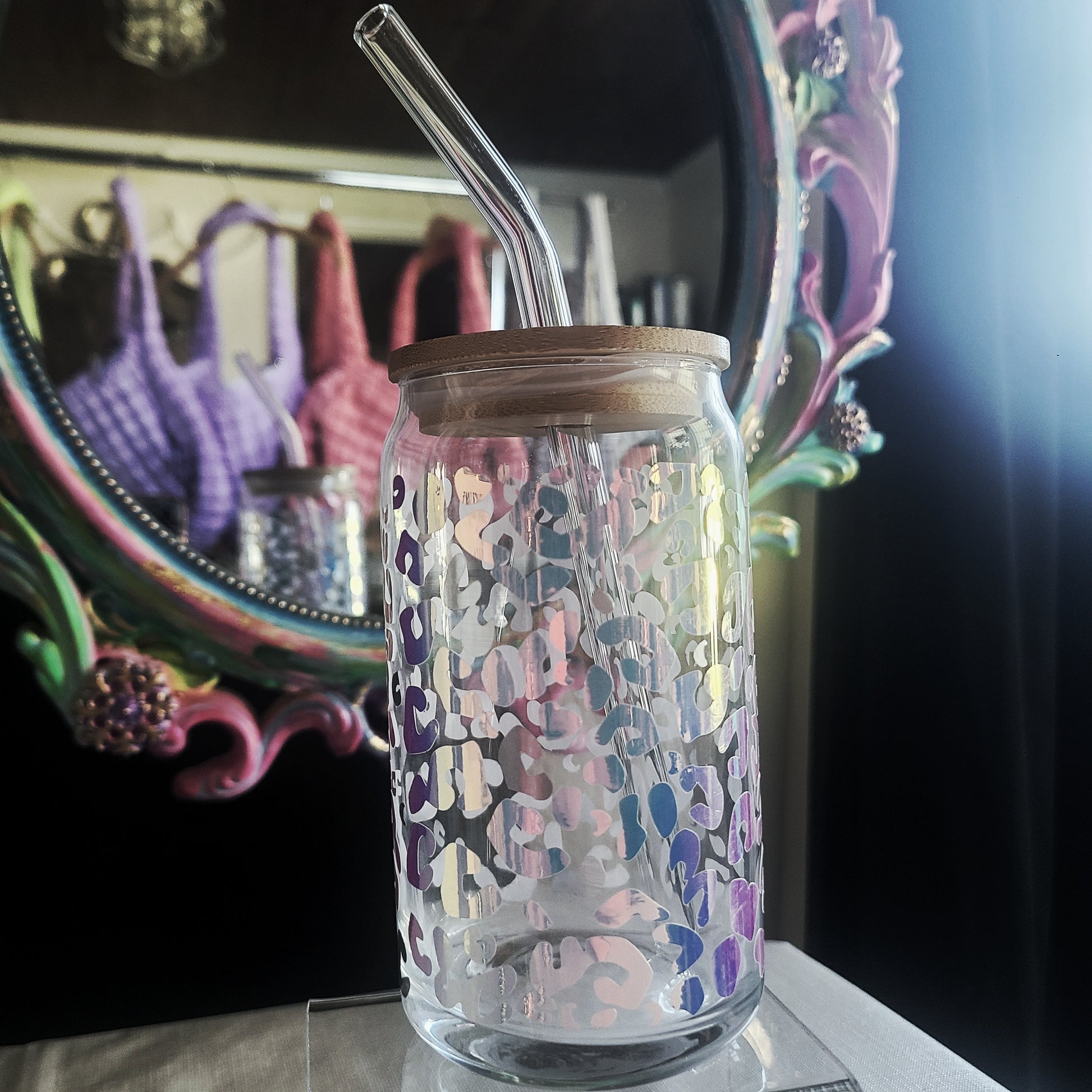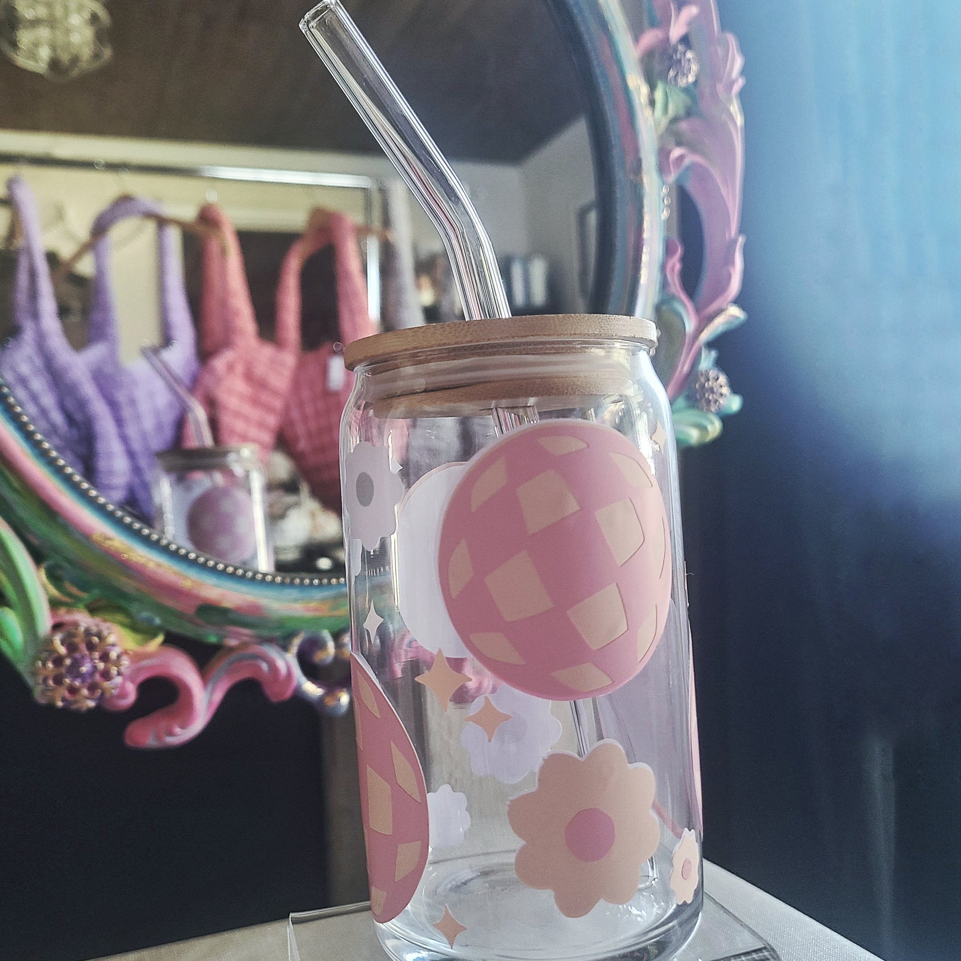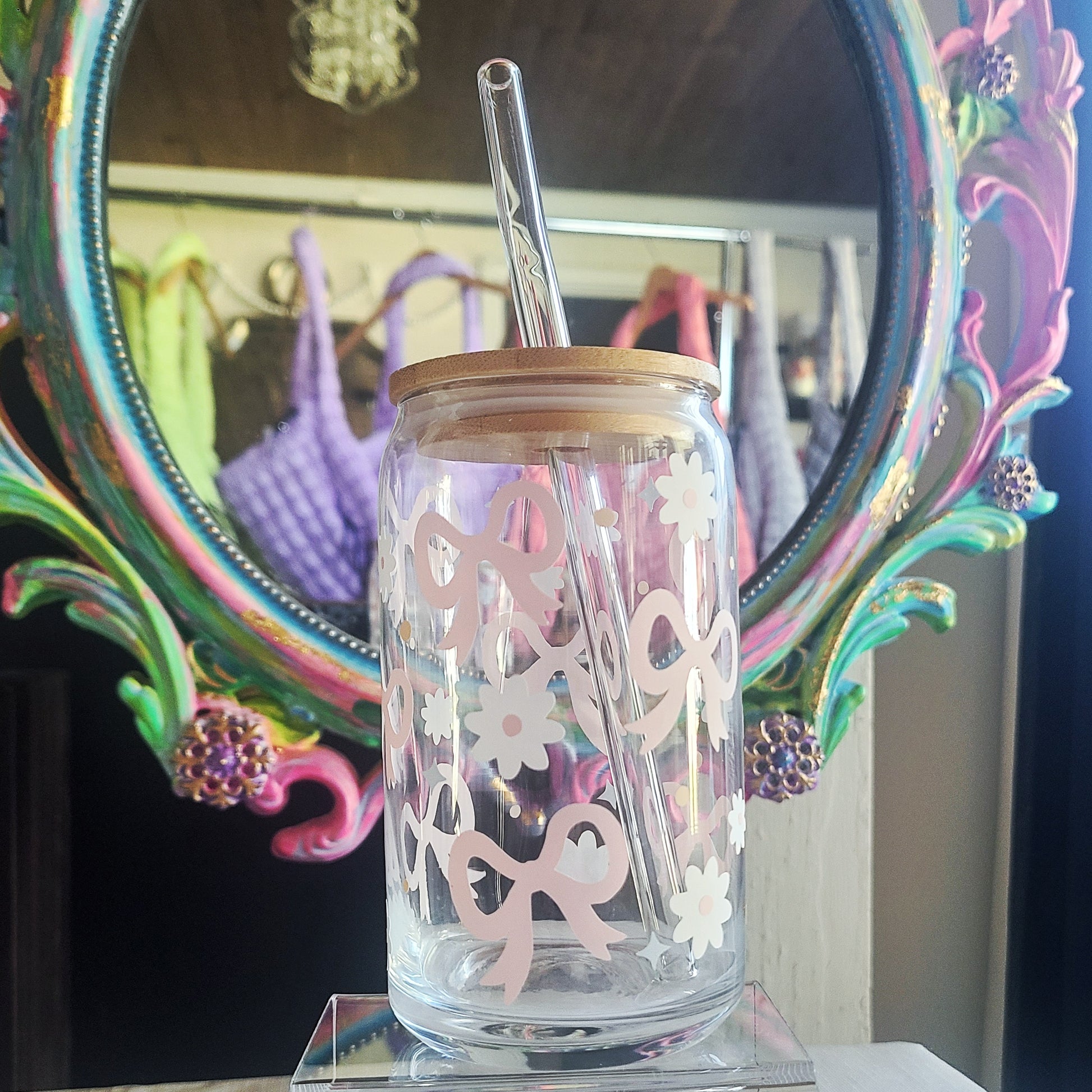 16 oz Glass Tumbler with Wooden Top and Glass Straw