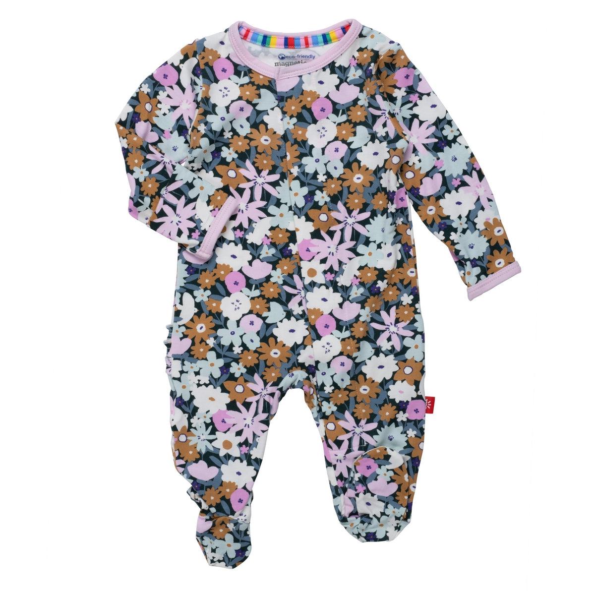 our parent favorite footie is an everyday (and night) essential with magnetic closures that make dressing easy. magnets are quick, quiet, and a lifesaver for middle-of-the-night changes. eco-friendly TENCEL™ modal is silky soft, breathable, and gentle on sensitive skin. temperature-regulating properties will keep warm in winter, you cool in summer, and oh-so comfortable year round.