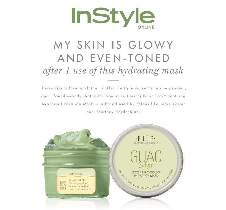 MASK: Guac Star® Hydration Mask is a creamy avocado butter, oil, and extract blend that deeply hydrates and softens with vital nutrients to get skin back to its happy place. Apply and let sit for 10 to 15 minutes. Rinse clean. Place in the refrigerator for an extra cool feel.