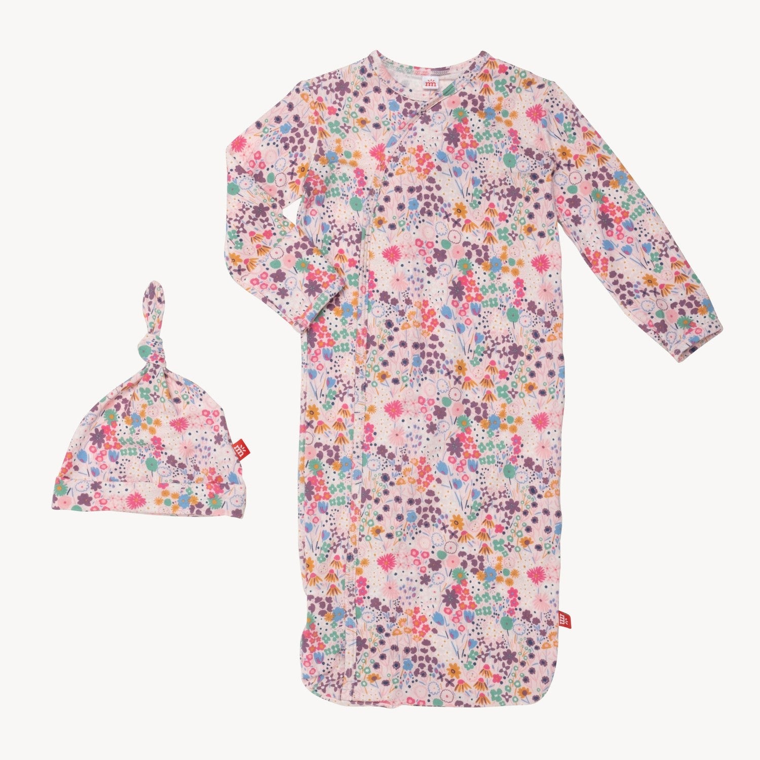 the cozy sleeper gown + hat set is a wardrobe staple for newborns who require constant diaper changes (aka all of them). with magnets down the front, baby stays in the gown during the diaper switcheroo: separate magnets, put on a freshy, click magnets, done. other amazing features: eco-friendly TENCEL™ modal fabric and built-in mitten cuffs.