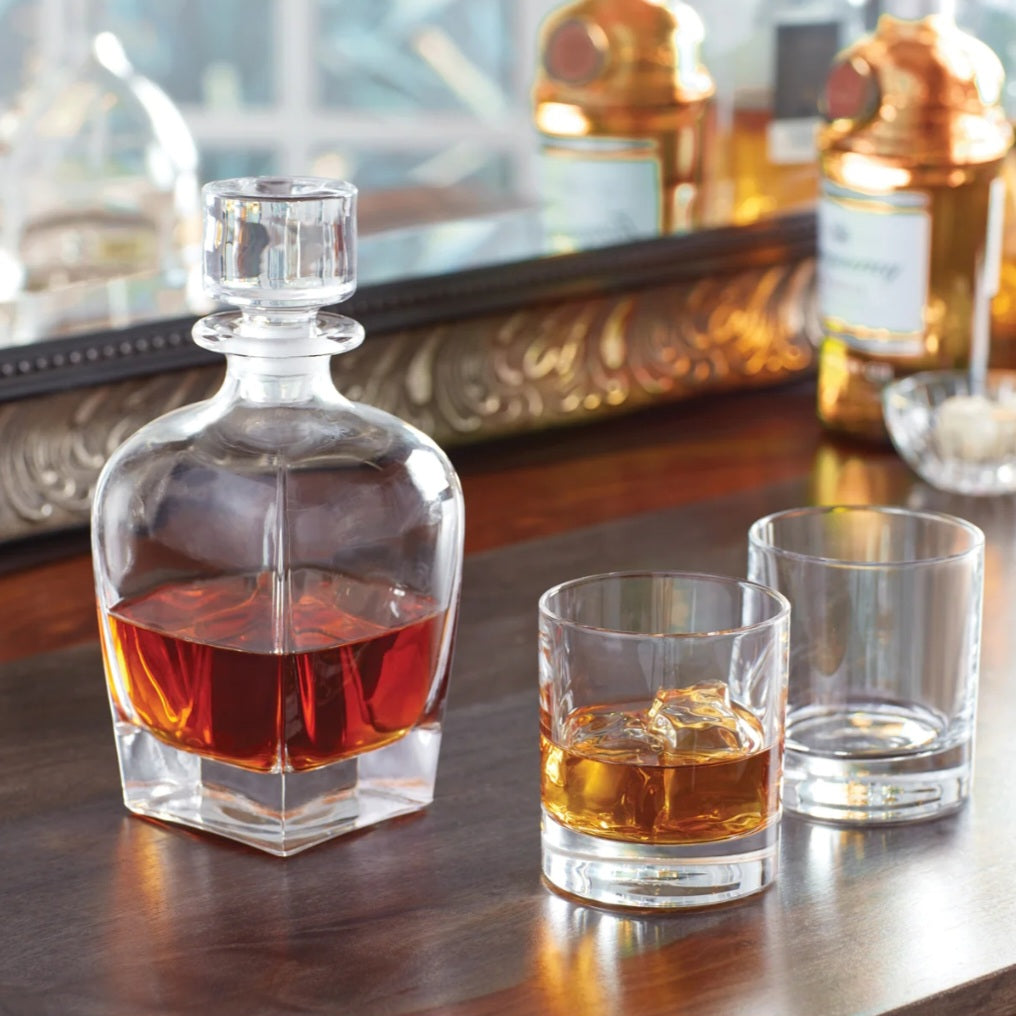 Crafted from break-resistant European glass, this 3-piece set from our Tuscany Classics collection is perfect for the whiskey drinker. The sleek and sophisticated decanter holds your whiskey and makes for a unique display. Pour your drink into our signature whiskey glasses and add an ice cube or two to share with a friend.