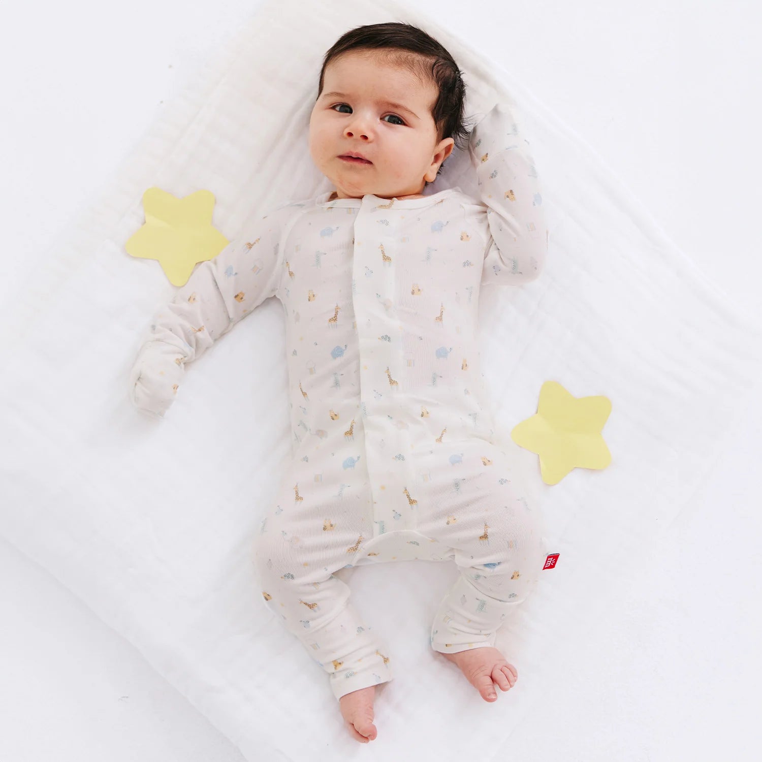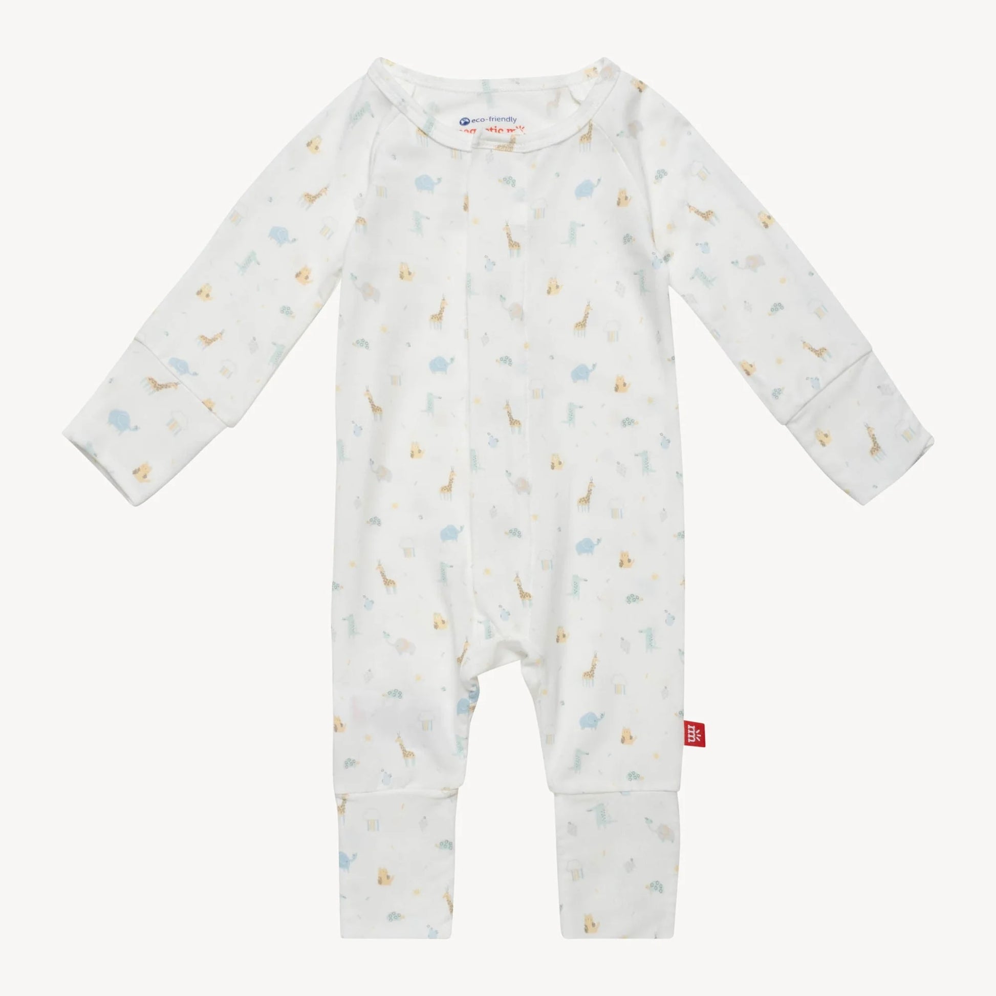- magnetic closures: magnets line the seam from the neck to upper thigh for sizes up to 0-3m & from neck to crotch for sizes 3-6m and up.