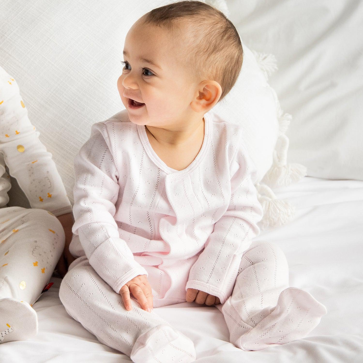 delicate pointelle stitching and subtle texture lend a traditional look.