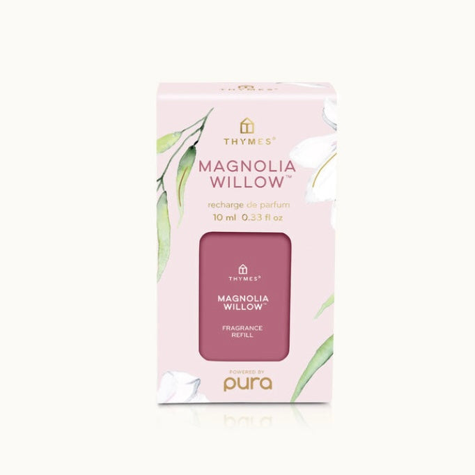 Conveniently refill your Pura Smart Home Diffuser with the joyful fragrance of Thymes Magnolia Willow. This pet and eco-friendly refill features notes of dewy magnolia blossoms, sheer mandarin, crushed jasmine, and white mahogany.