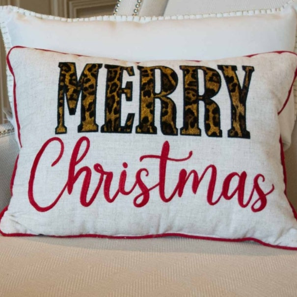 Merry Christmas Leopard Print Pillow