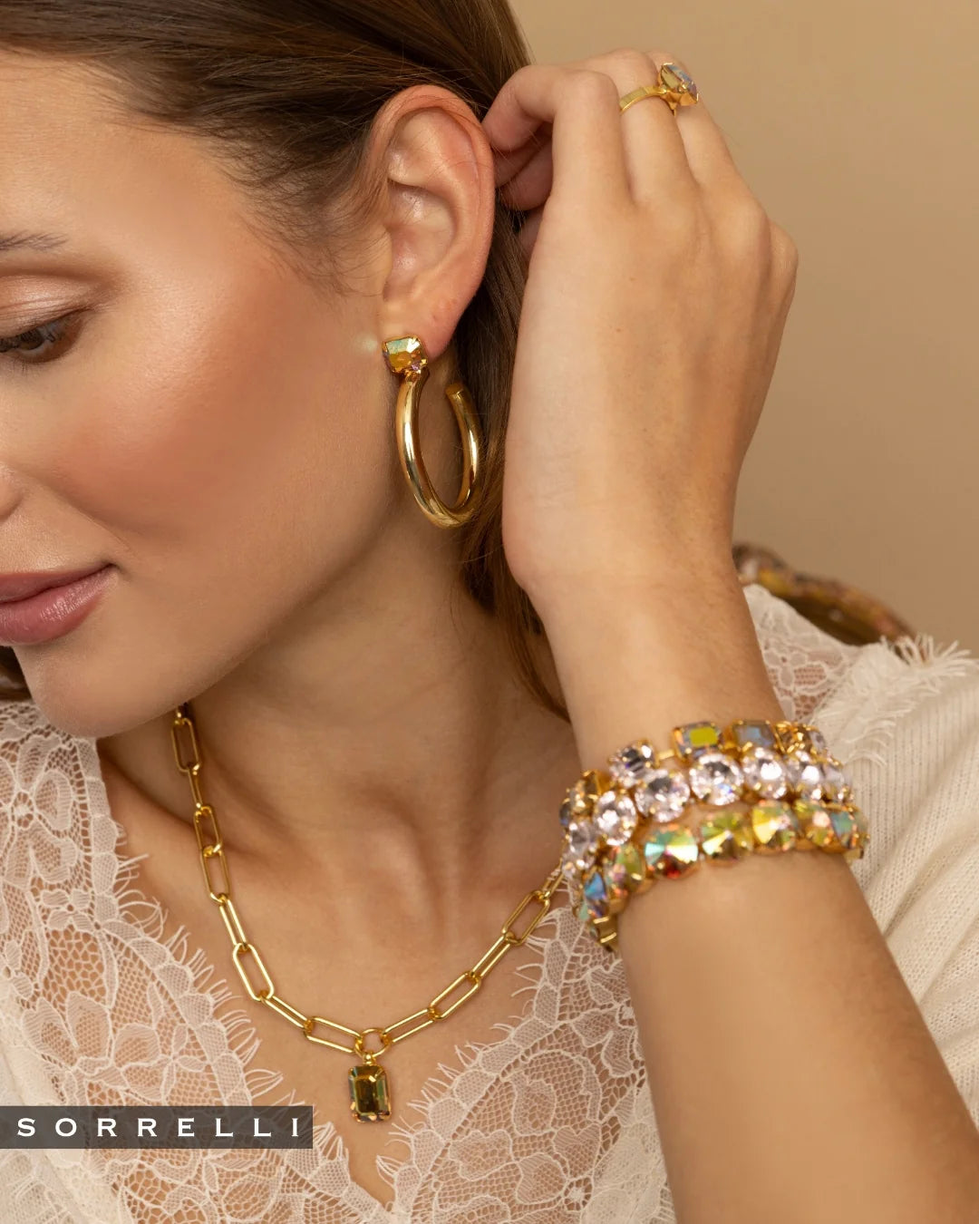 The Nia Pendant Necklace features an emerald cut pendant on an adjustable large chunky paperclip chain, secured with a lobster claw clasp. (16-20 inches) From Sorrelli's Light Colorado Aurora Borealis collection in our Bright Gold-tone finish.