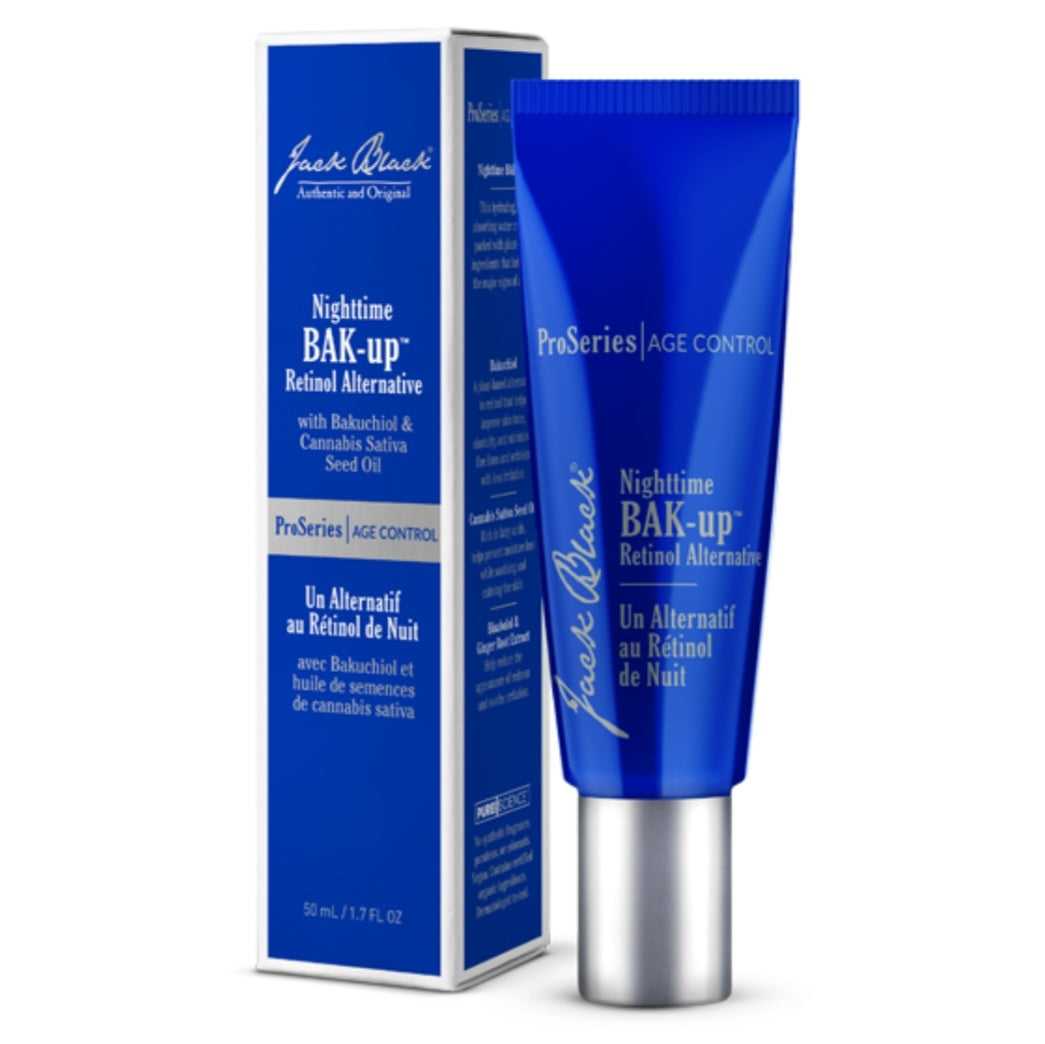Nighttime BAK-up has been clinically shown to significantly improve the appearance of fine lines and wrinkles and enhance the overall appearance of the skin. The unique formula features bakuchiol, a botanical shown to provide benefits comparable to retinol but without the potential irritation, and cannabis sativa seed oil to prevent moisture loss and soothe skin.