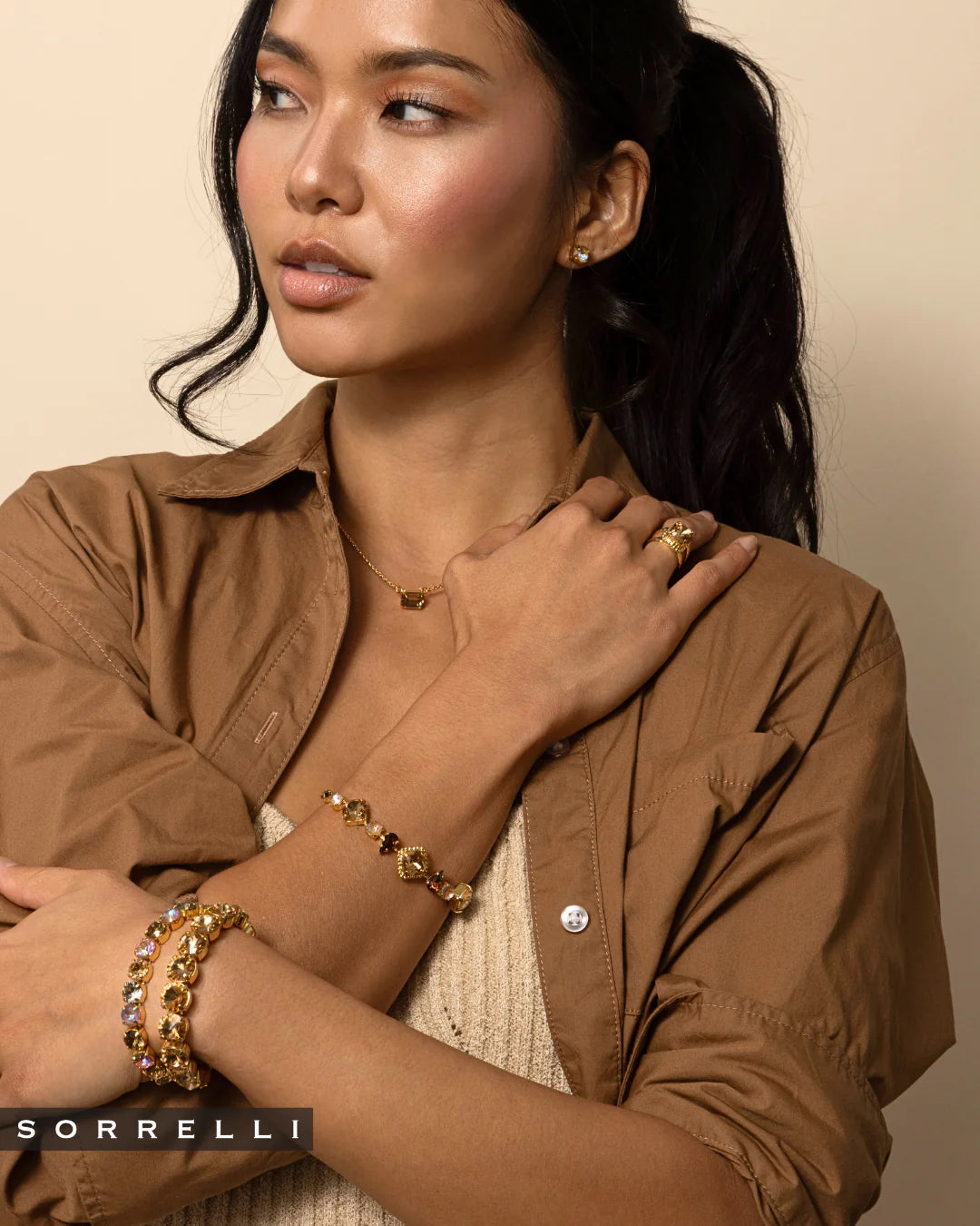 The Octavia Single Crystal Pendant Necklace features a single horizontal emerald-cut crystal on an adjustable chain, secured with a lobster claw clasp. From Sorrelli's Light Colorado collection in our Bright Gold-tone finish.