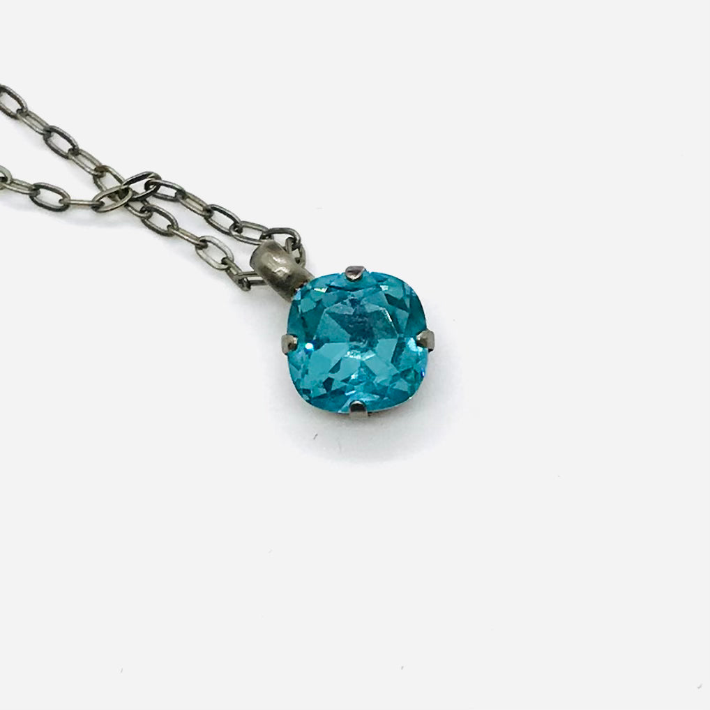 Sorreli Antique Silver Pendant Necklace Aqua Crystal