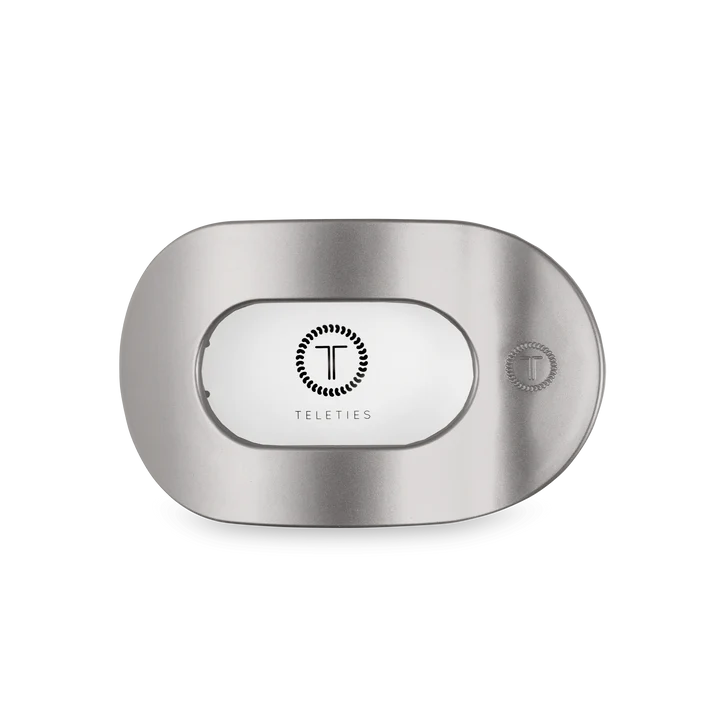 Lay flat and relax with the new TELETIES Disco Daydream Medium Flat Round Hair Clip in Gray. This hair clip is designed to allow you to lay back flat, do yoga, or sit comfortably in a seat with a headrest, and it is made with the same material that is nearly unbreakable.
