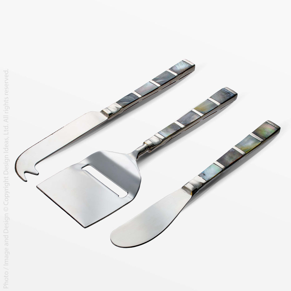 The Abalon Artisan Forged Stainless Steel Cheese Knives are the perfect way to serve your favorite cheeses. This set of cheese knives is handmade by skilled artisans in India. The blades are forged from premium stainless steel and the handles are made from sustainable wood. The Abalon cheese knives are the perfect way to impress your guests at your next party or gathering.