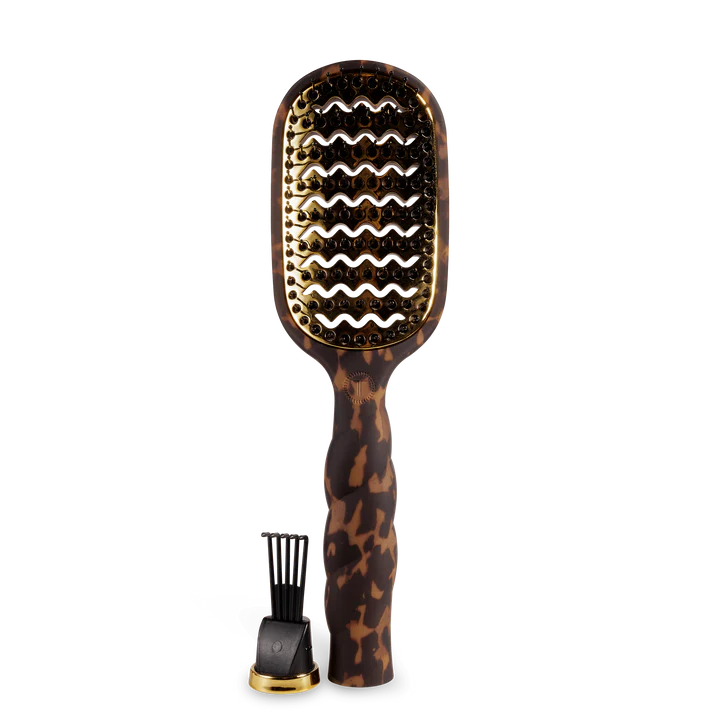 The Vented Brush in Tortoise is your new secret to faster, smoother blowouts. Pairing a Quick-Heat Aluminum Plate that heats up in seconds and distributes heat evenly with a vented design to enhance air flow, this vent brush works perfectly with your blow dryer to cut down on styling time without cutting corners on results.