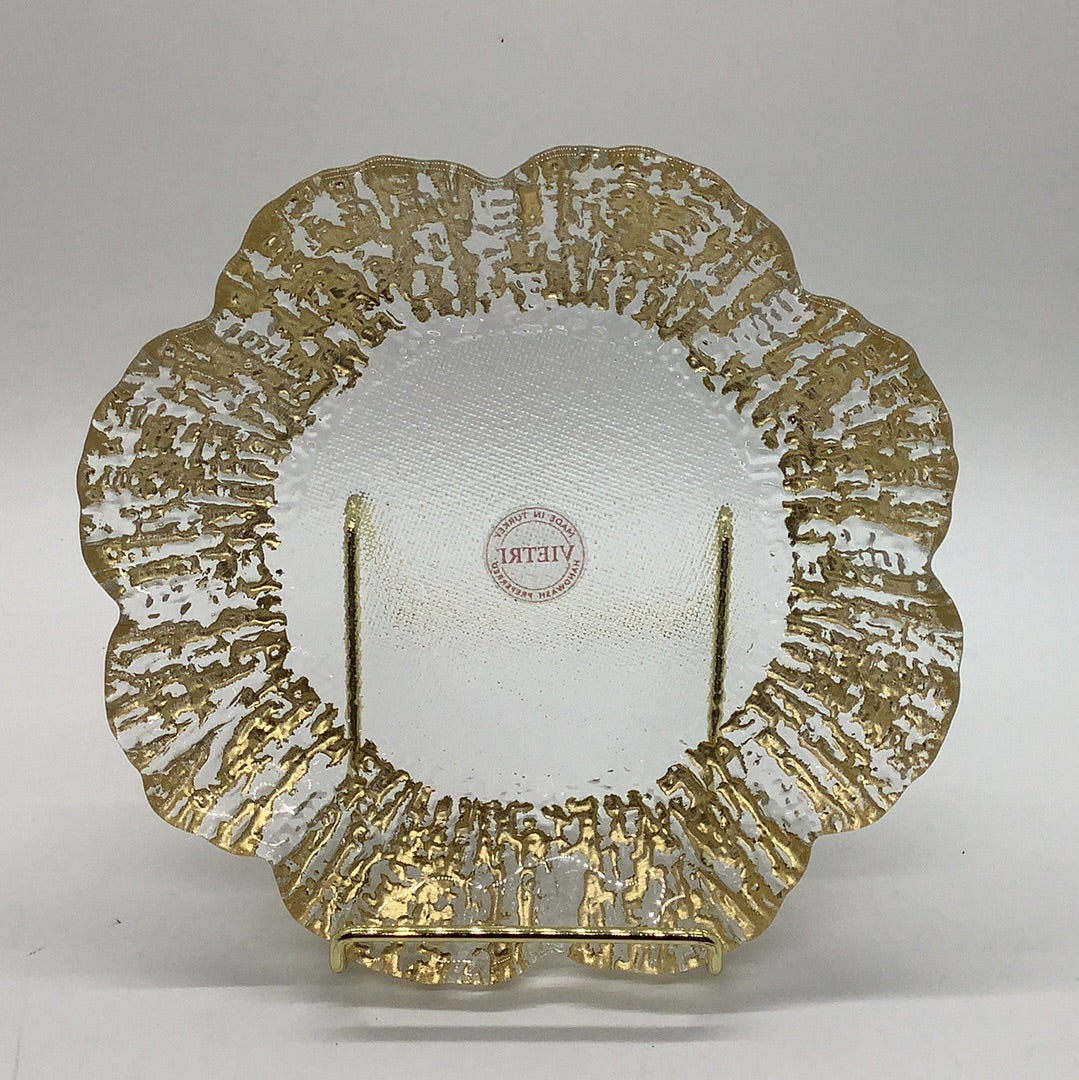 Bring shimmer to your celebrations with golden strands on this Rufolo Glass Gold Canapé Plate.