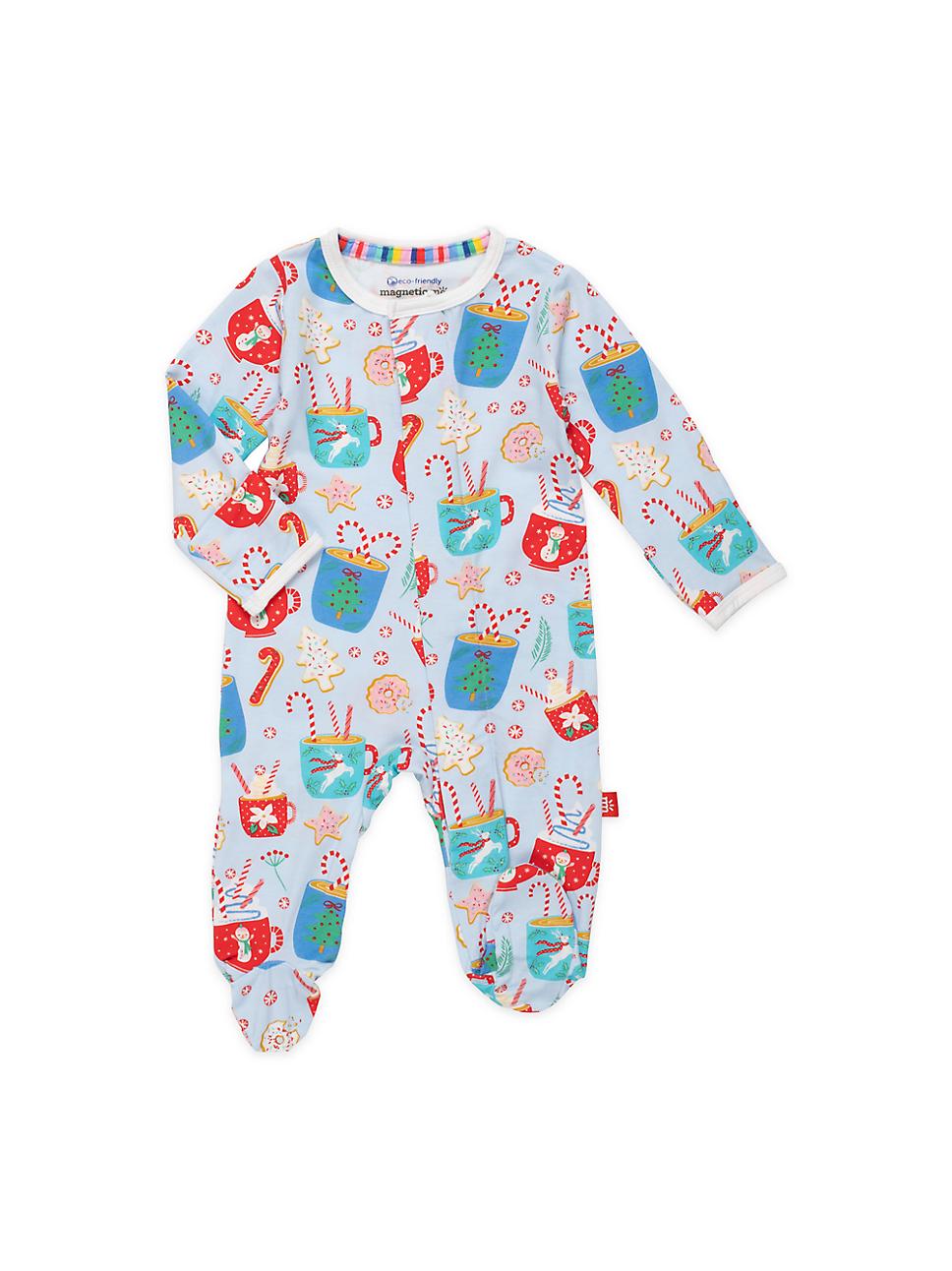 Magnetic Me's footie flaunts a holiday-themed candy cane hot cocoa print.