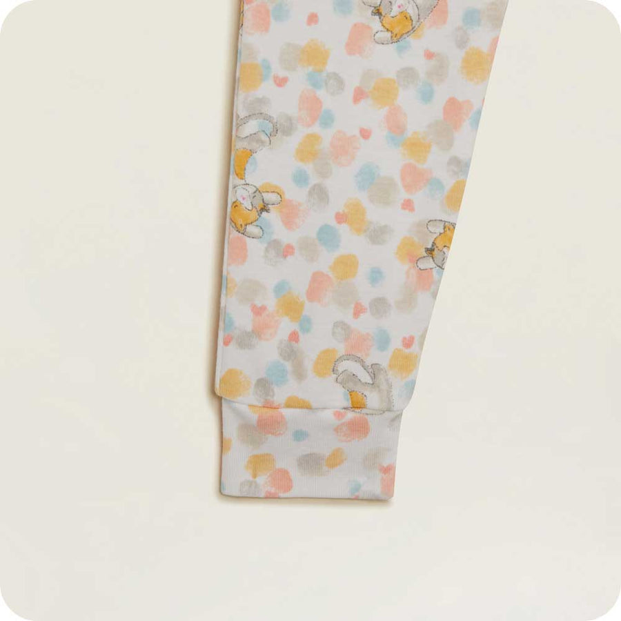 Warmies pajamas are made for stylish, soothing comfort at bedtime, designed with calming hues in a 100% cotton fabric that gets softer with every wash. The ribbed pajama set features a stretch elastic waistband, ensuring they remain securely in place, and the Warmies label is printed directly on the fabric to avoid the irritation of traditional scratchy tags.